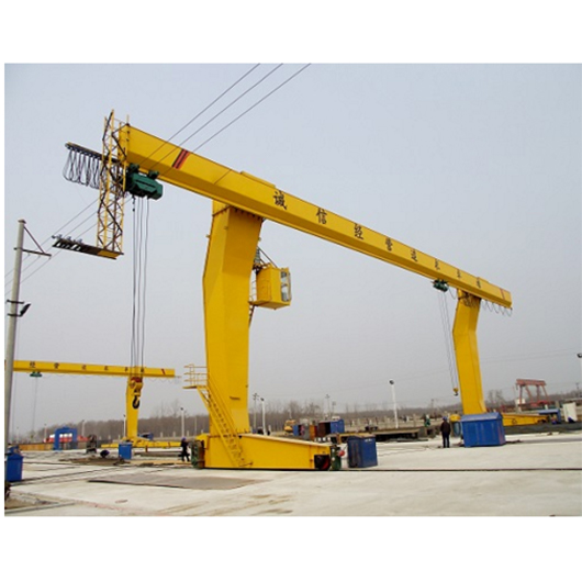 水平橋架設置在兩條腿上,形成門架形狀的橋架起重機。這種起重機在地面軌道上運行,主要用于室外儲料場、碼頭、電站、港口、鐵路貨運站的搬運和安裝。龍門起重機的起重機構、汽車運行機構和橋梁結構與橋梁起重機基本相同。由于跨度大,起重機運行機構大多采用單獨的驅動方式,防止起重機歪斜運行,增加阻力,甚至發(fā)生事故。龍門起重機的起重機在橋上運行,有些起重機是臂架起重機。